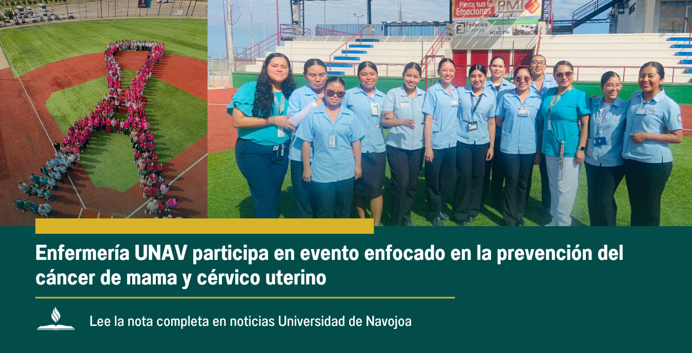 En un evento cargado de solidaridad, esperanza y compromiso con la salud femenina, la Escuela de Enfermería de la Universidad de Navojoa (UNAV) se sumó el pasado 17 de octubre a la formación de un lazo humano, organizado por el Distrito de Salud 05, en el marco del mes de concientización sobre el cáncer de mama. La actividad tuvo lugar en el estadio Sport Town Blvd Manlio Fabio Beltrones, en Navojoa, Sonora, y reunió a diversas instituciones, familias y miembros de la comunidad local, todos unidos bajo un mismo propósito: fortalecer la prevención y la educación en salud para la mujer.